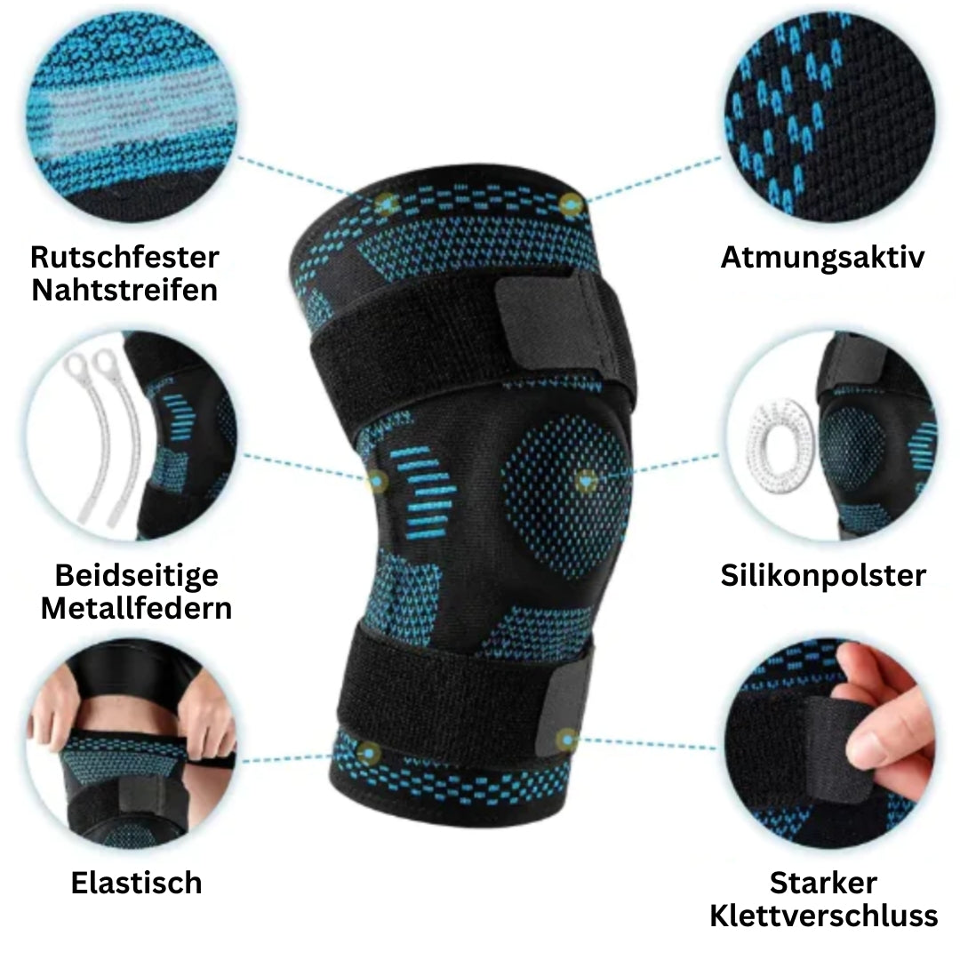 Zusätzlich sorgen integrierte Stabilisatoren und ein Patella-Ring dafür, dass Ihr Knie bei jeder Bewegung geführt und geschützt wird – ganz ohne die Beweglichkeit einzuschränken.