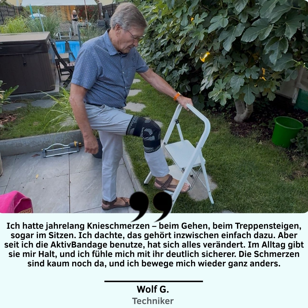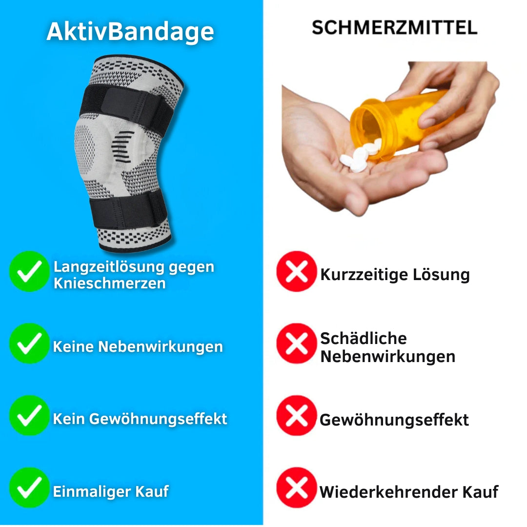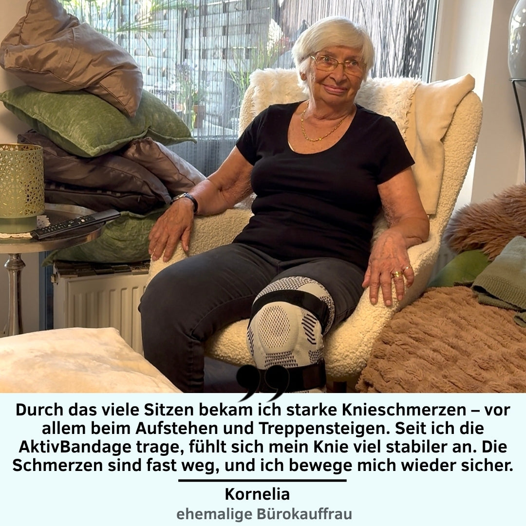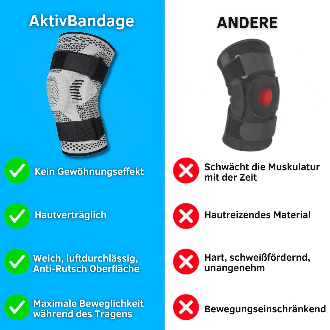 Sofortige Erleichterung bei Knieschmerzen. Die AktivBandage kann bereits bei der ersten Anwendung dazu beitragen, Beschwerden im Kniebereich zu lindern. Bei regelmäßiger Anwendung über einen Zeitraum von vier Wochen können sich langanhaltende Vorteile einstellen und Ihre Mobilität unterstützen